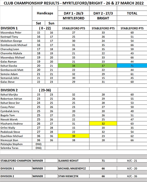 GROWLING FROG RESULTS – 30 JANUARY 2022