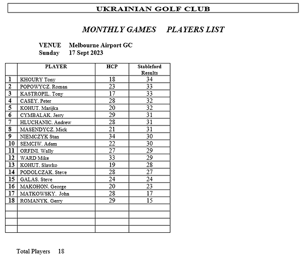 To accommodate the celebration of Ukrainian Independence day on Sunday 27 August our golf game for this month at Werribee was brought forward one week to Sunday 20th.